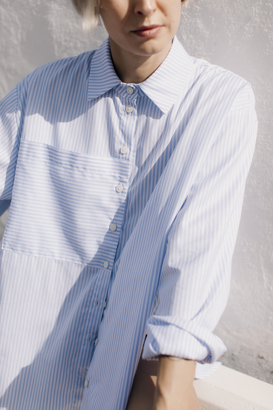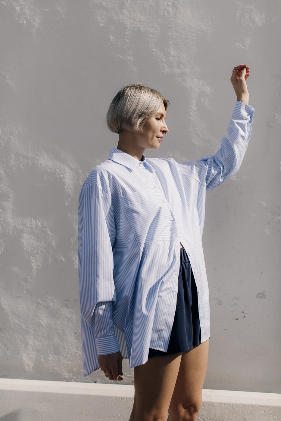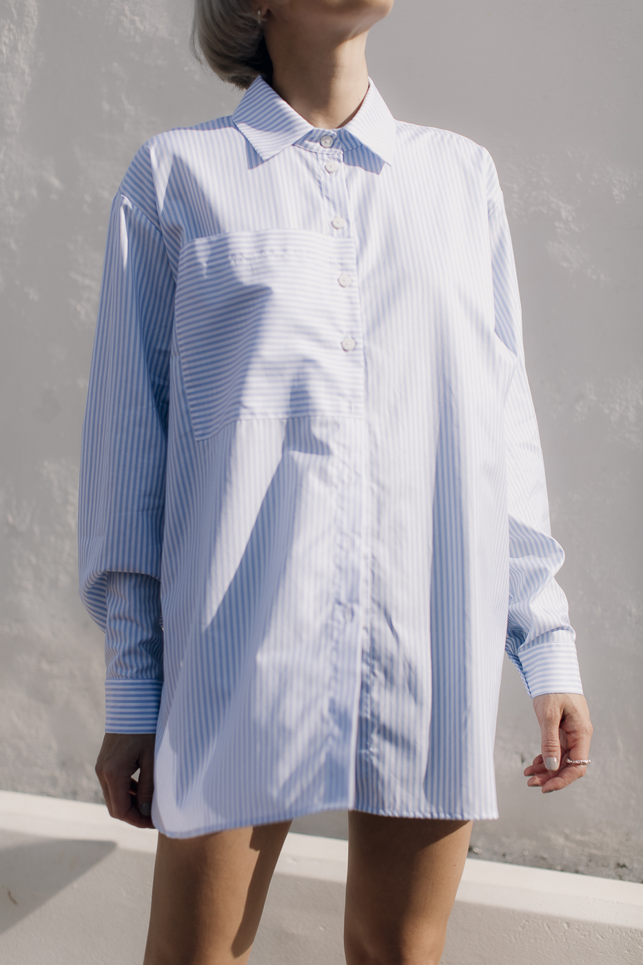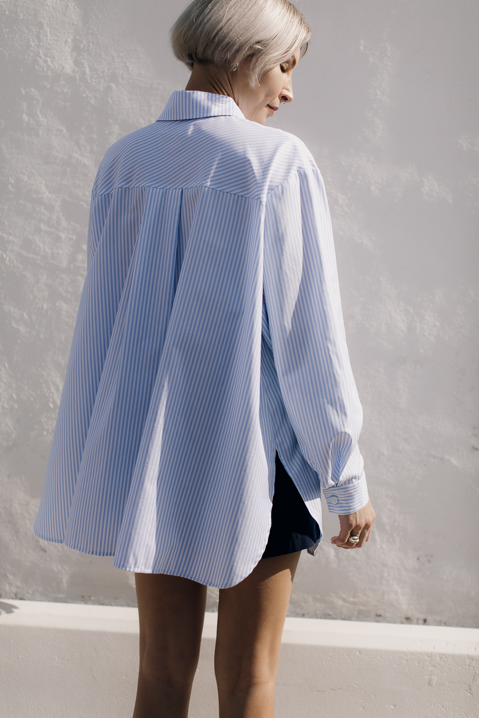 Oversized striped shirt.