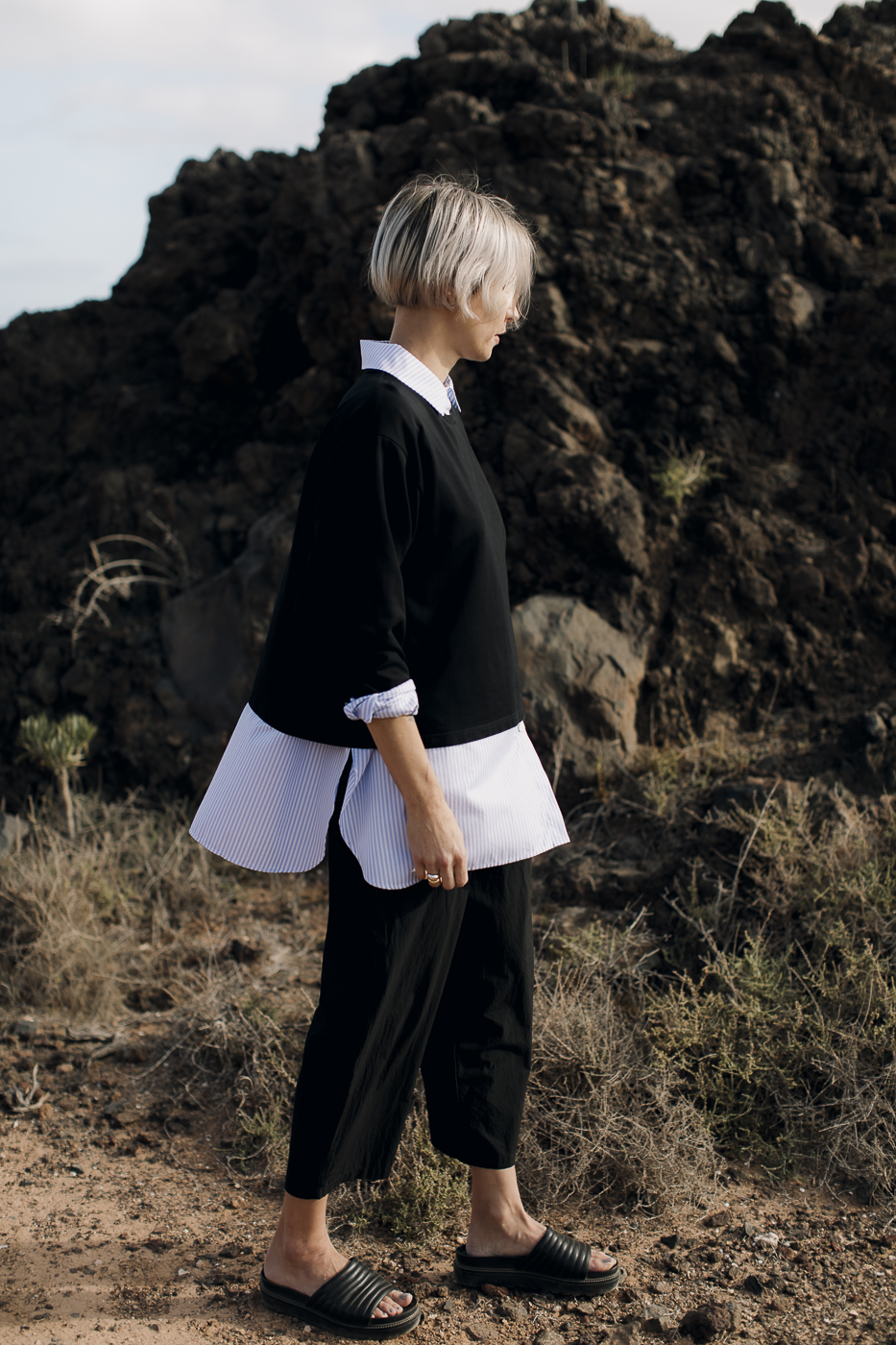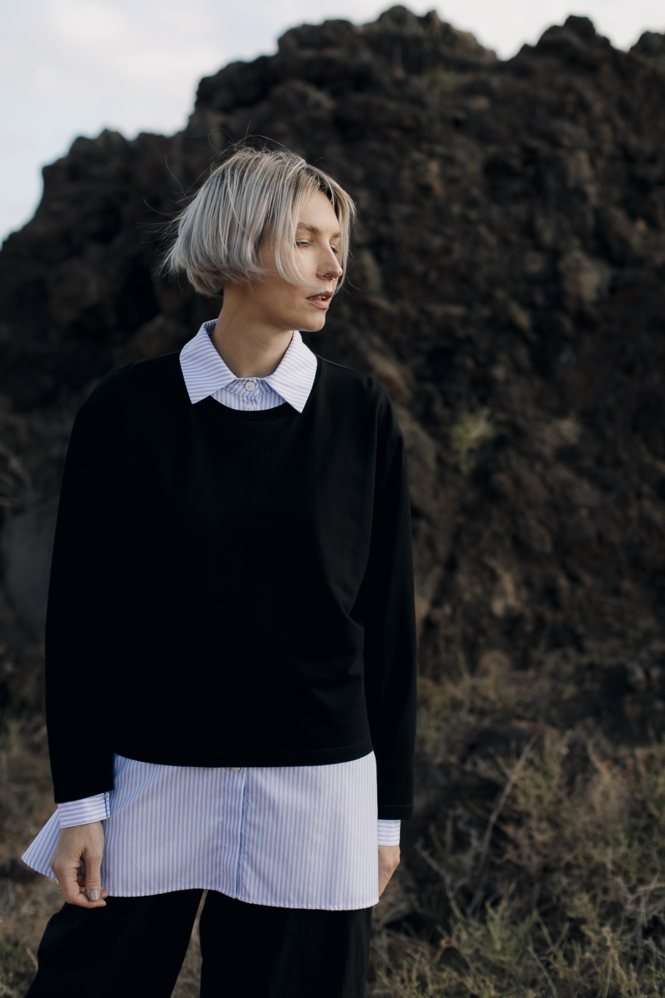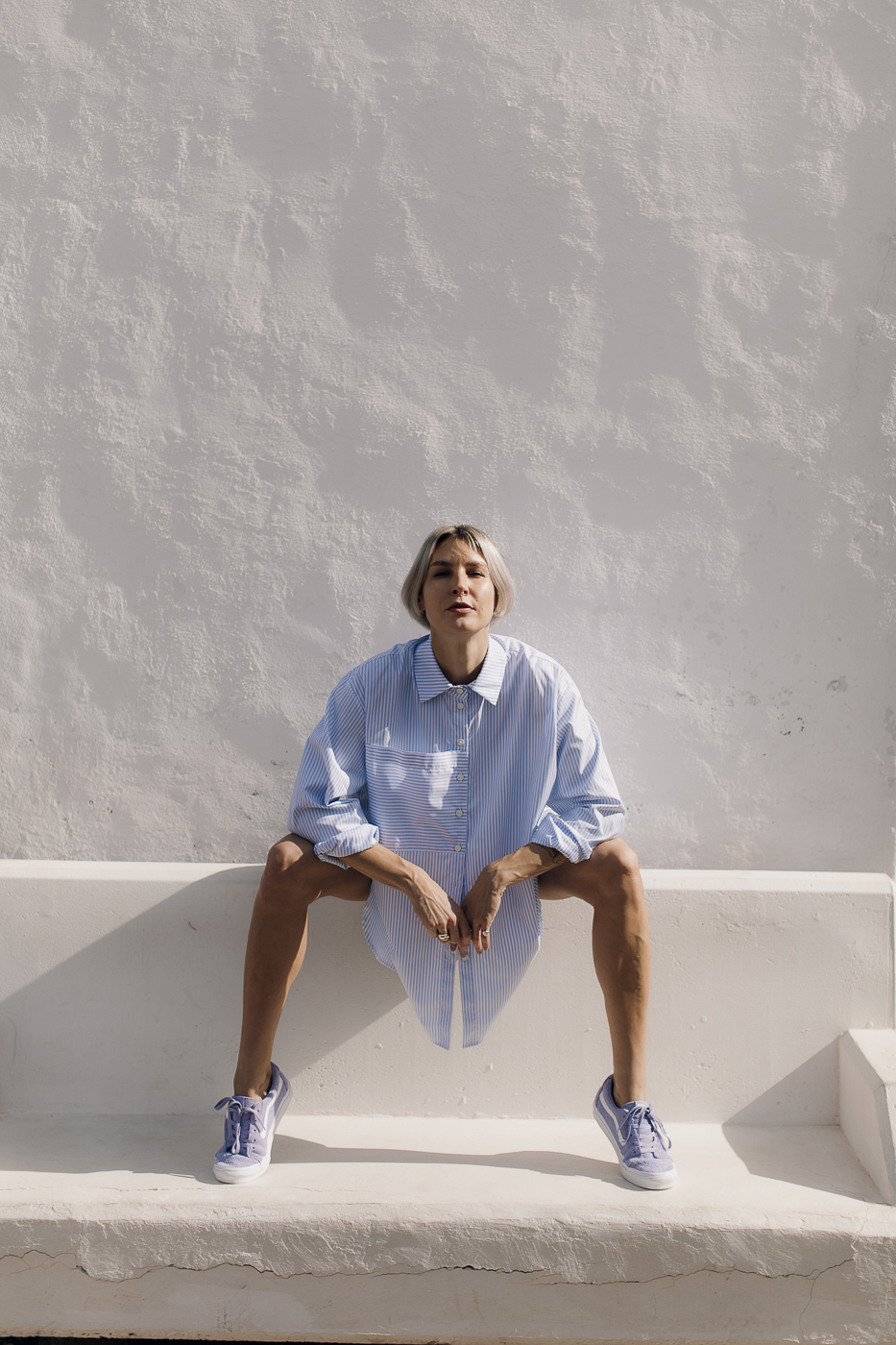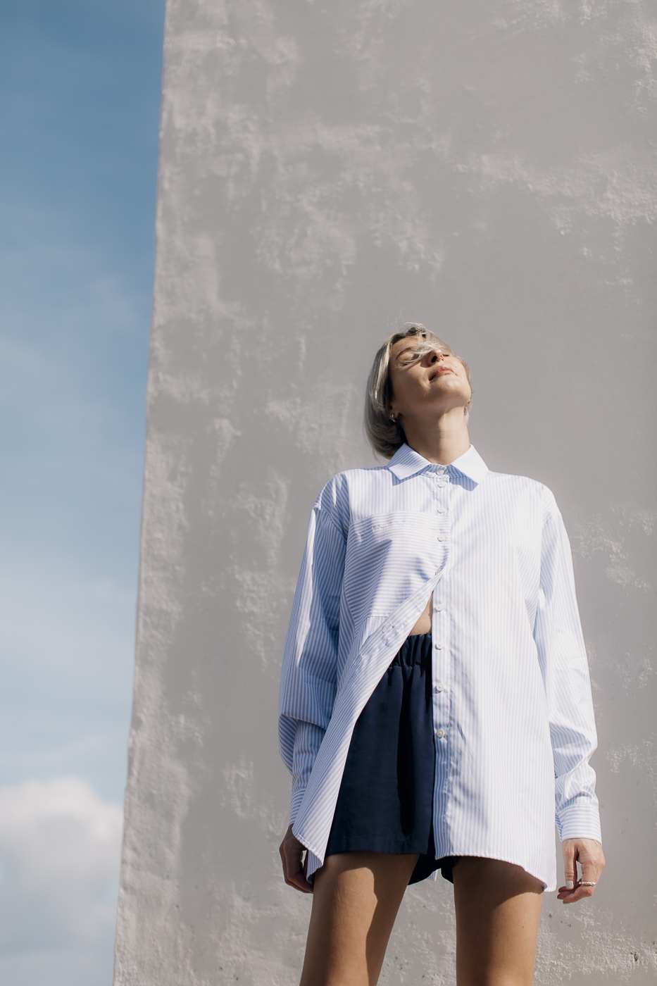 Oversized striped shirt.