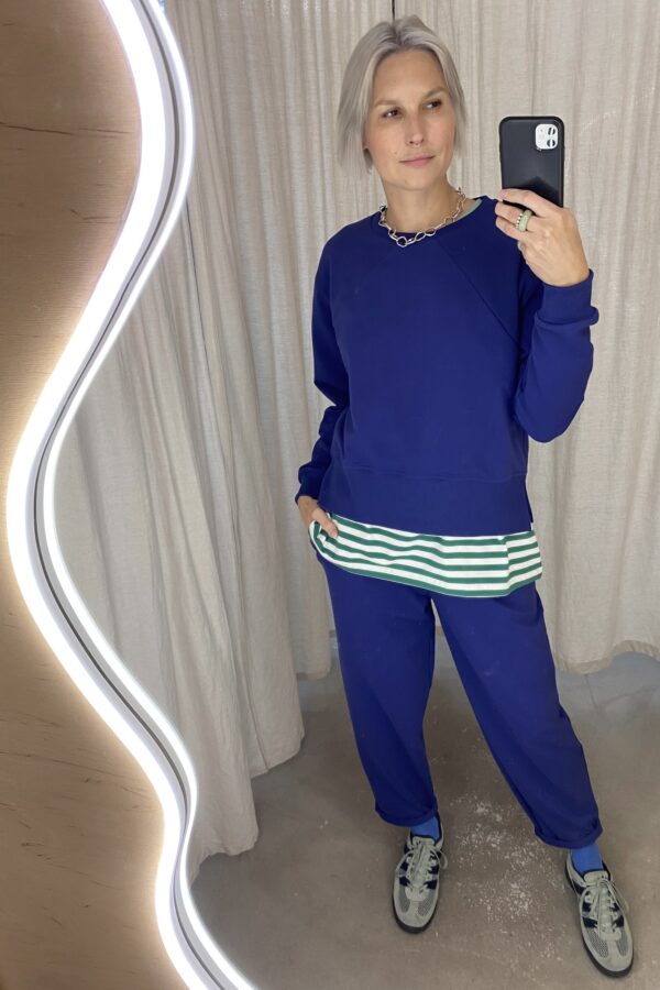 You can wear these trousers with the QUITO /navy cotton/ sweatshirt to have a full tracksuit.