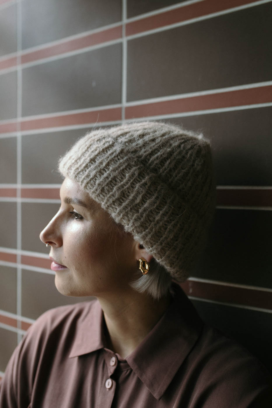 Wełniana czapka robiona ręcznie na drutach.