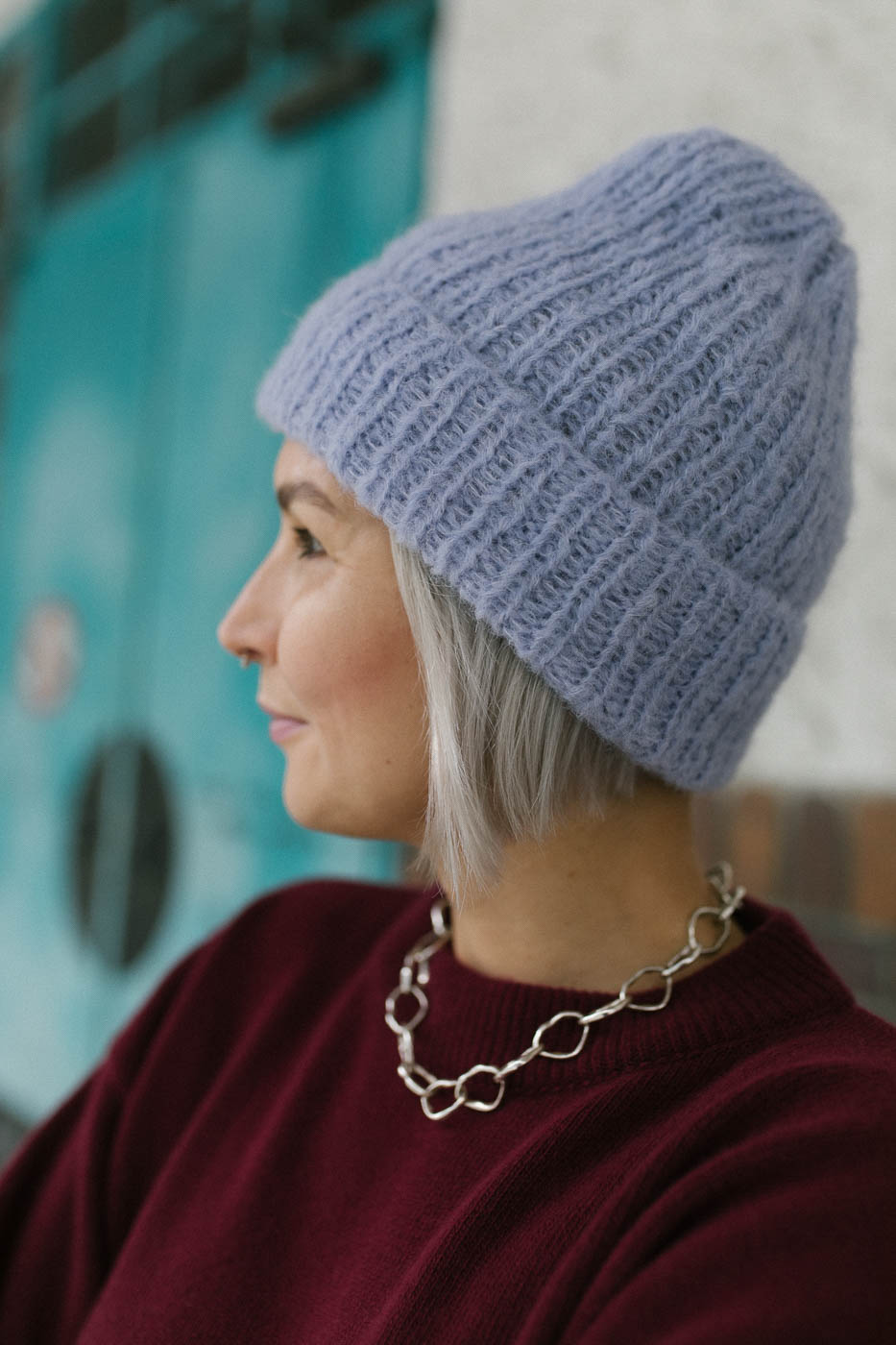 Czapka jest z mieszanki wełny alpaki z jedwabiem. Jest bardzo miękka, miła w dotyku i noszeniu, nie gryzie. Dodatkowo, przędza z długim włosem nadaje czapce puszystości.