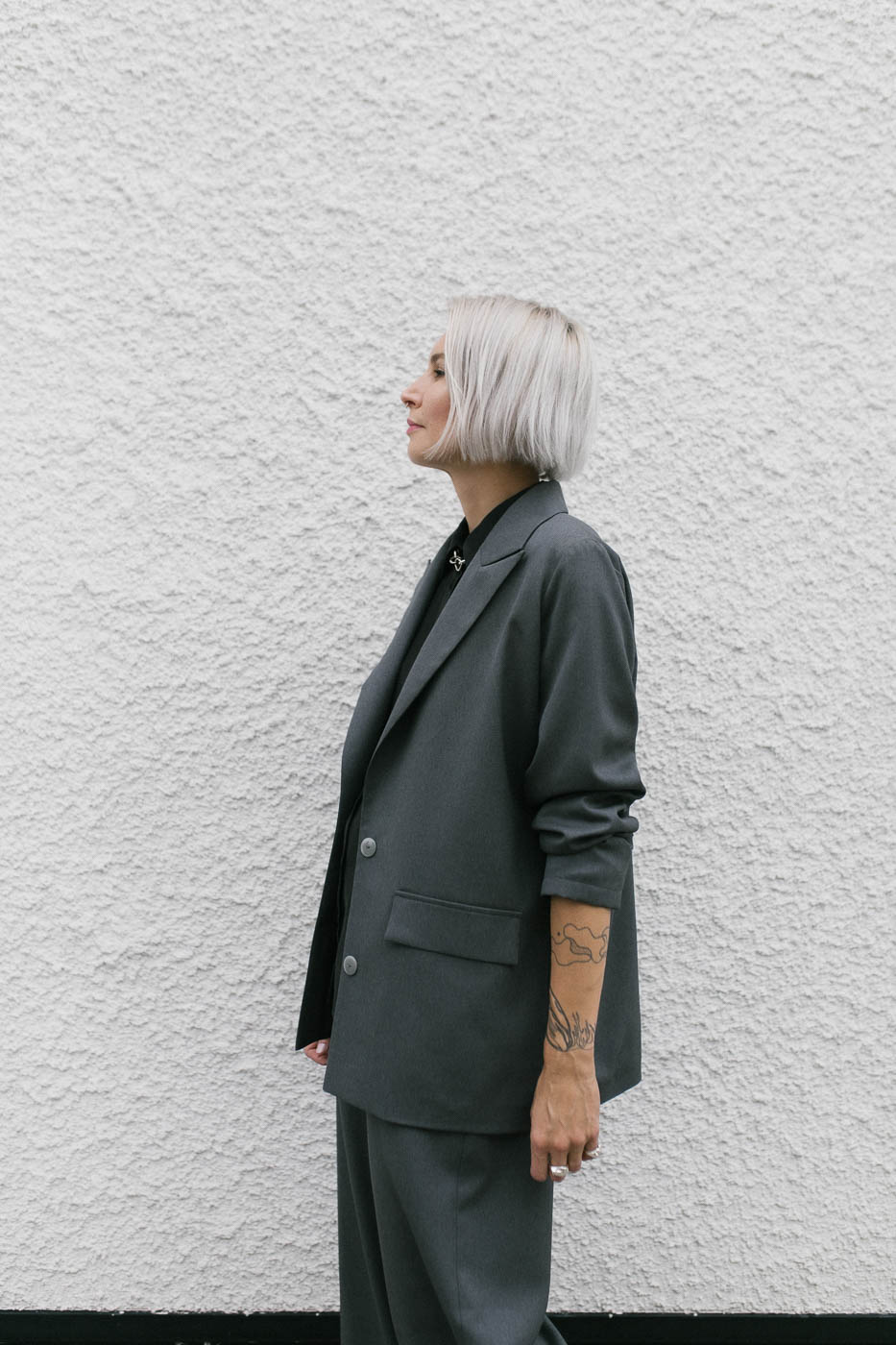 Marynarkę można łączyć z szytymi z tej samej wełny spodniami FIKA /graphite wool/, tworząc w ten sposób pełnoprawny garnitur.