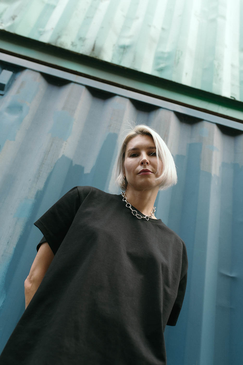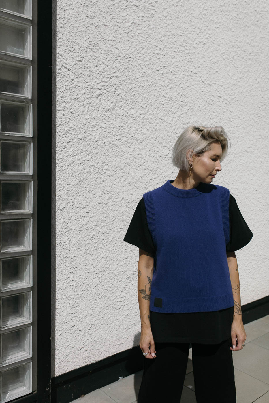 Model ten świetnie łączy się zarówno ze spodniami, jak i spódnicami. Ja lubię zakładać go pod krótsze bluzy (np. FUKU lub TERE, YEY) lub kurtki YORK. Pasuje też świetnie do wełnianej kamizelki STØ. Podoba mi się warstwowość, którą razem tworzą.