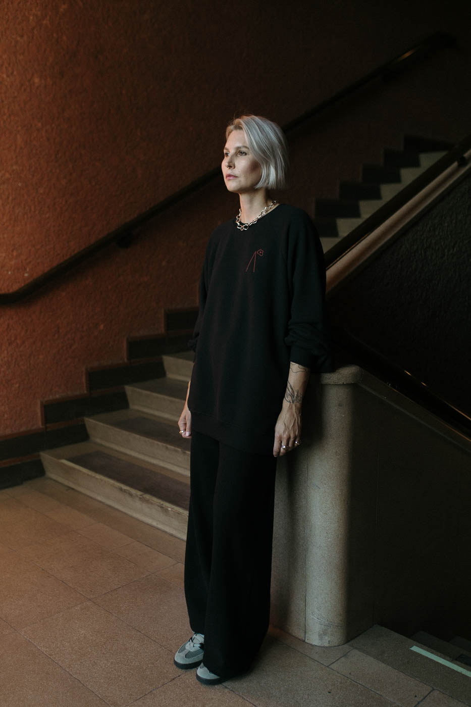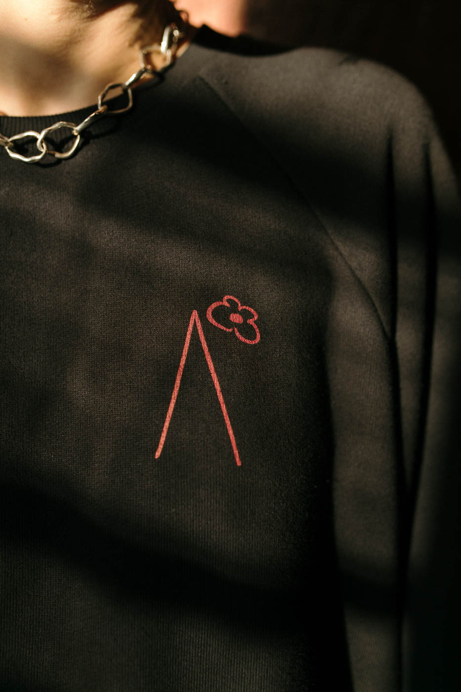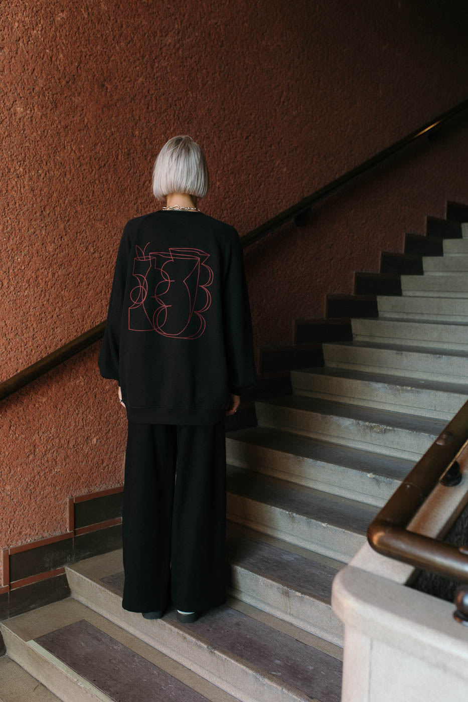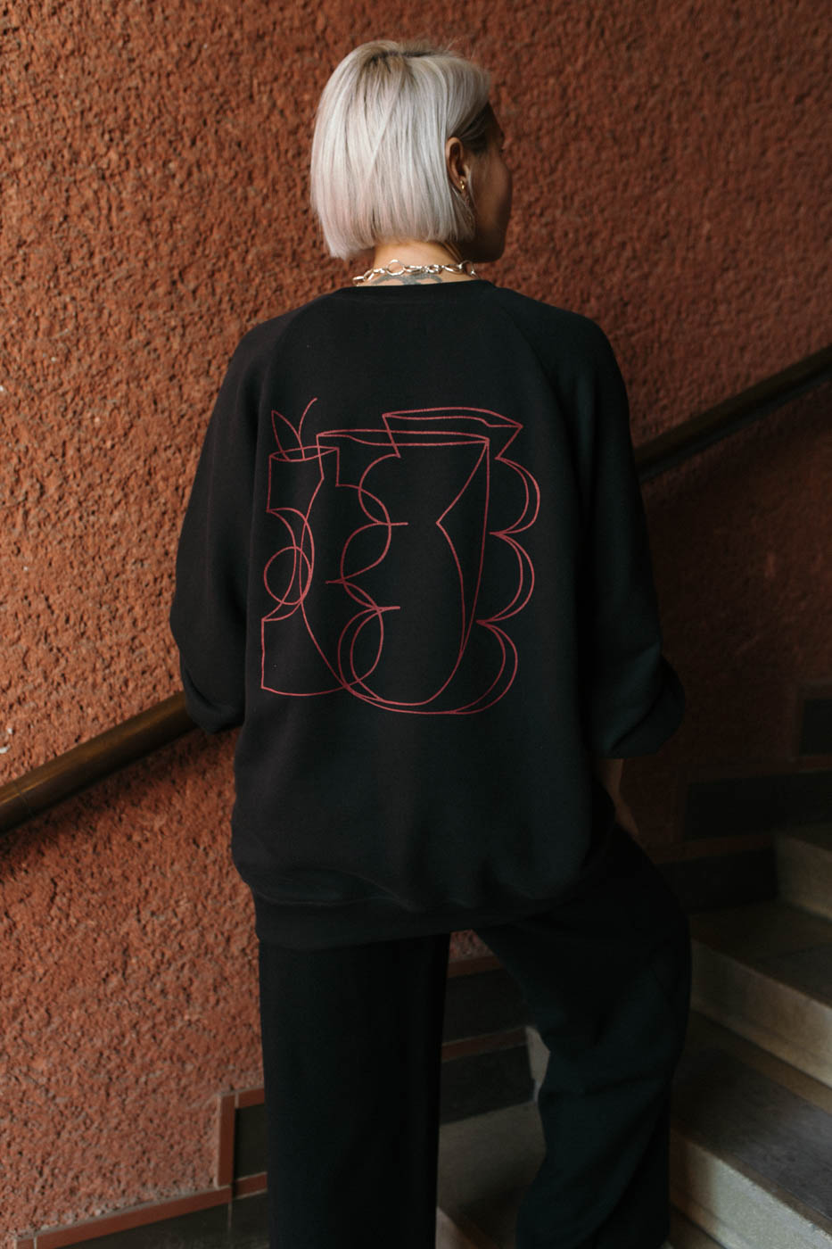 Bluza powstała we współpracy z wrocławską artystką Anią Szczerbą. Ania zaprojektowała wzór specjalnie dla Pulpy (możecie go też zobaczyć na tiszercie i chustkach VASES – i mieć wazoników komplet).