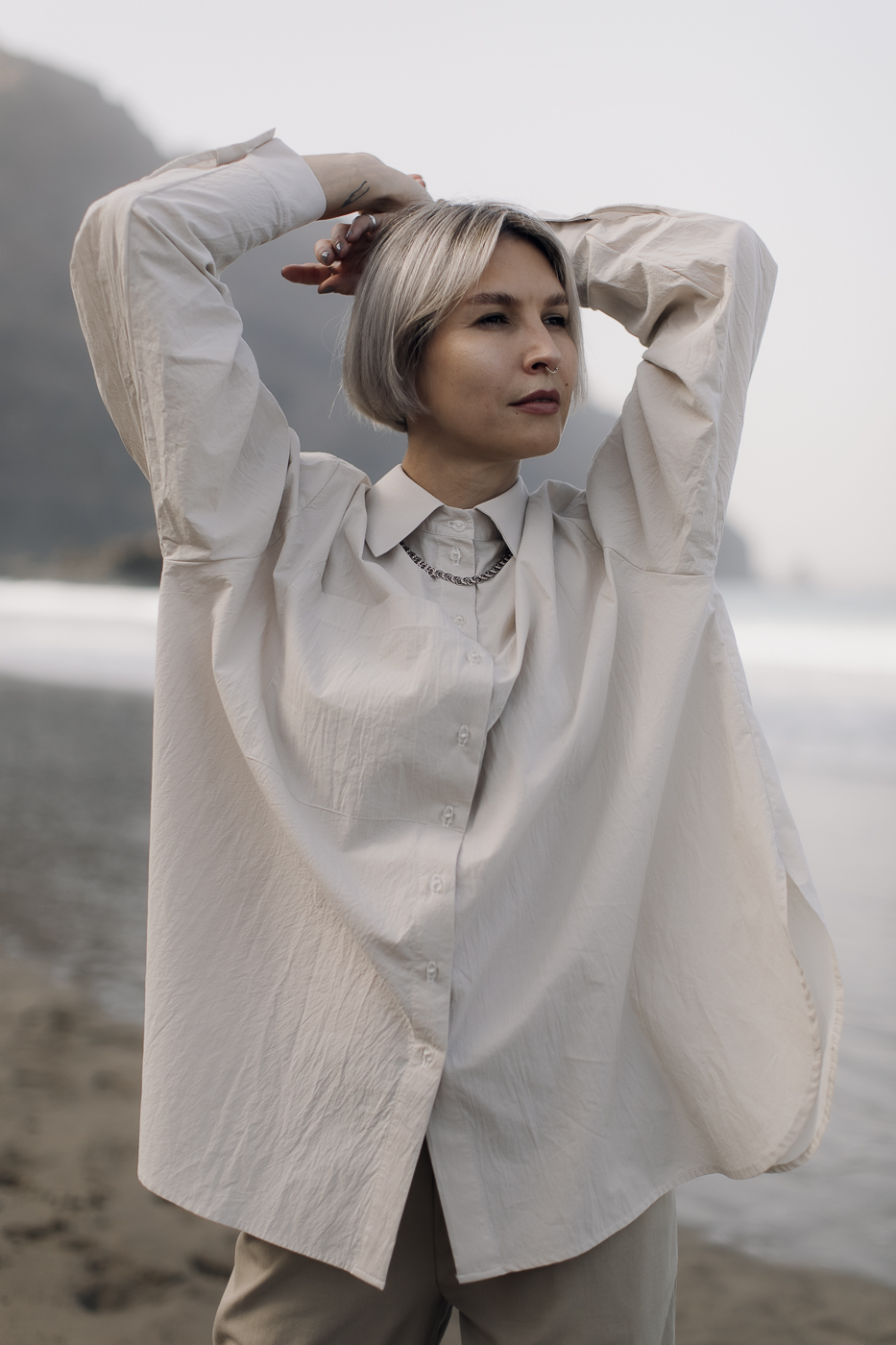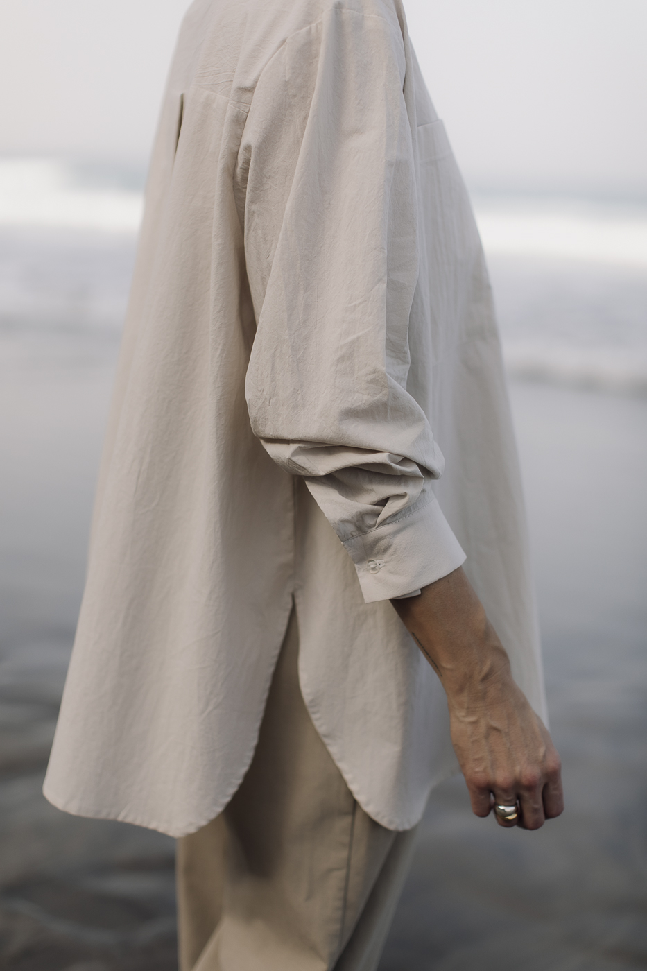 Oversize’owa koszula uszyta z 'gniecionej’ bawełny.