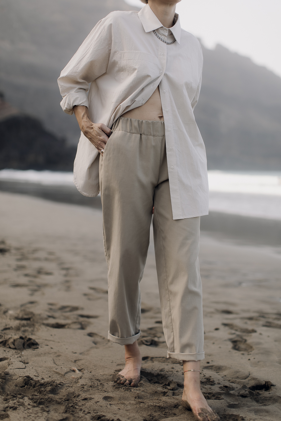 Gnieciona tkanina sprawia, że każde kolejne zagniecenie jest wskazane, żelazko jest tu niepotrzebne. Dodatkowo, tkanina jest bardzo lekka i po złożeniu zajmuje mało miejsca. Świetnie więc sprawdzi się w podróży.