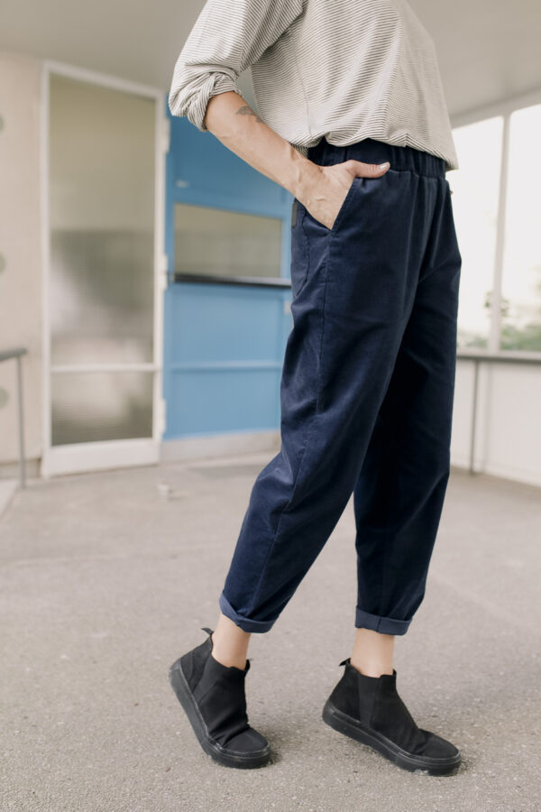 Nogawka zwężana jest ku dołowi. Doskonale nadaje się do podwijania. Dzięki temu sztruksy można dopasować do swojego wzrostu.