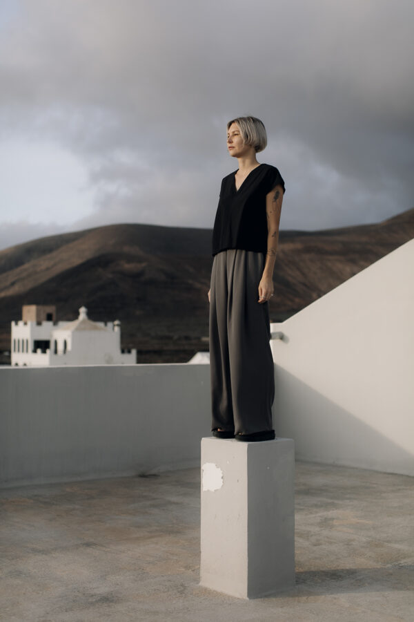Spodnie uszyte są z certyfikowanego lyocellu marki Tencel (więcej o samym materiale z zakładce Skład i Pielęgnacja).