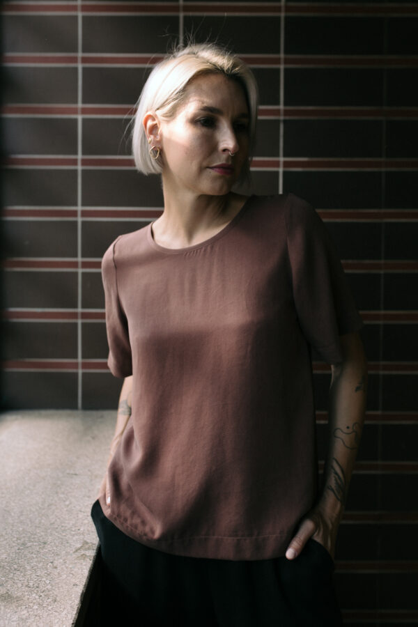 Klasyczny t-shirt, ale zamiast z bawełnianej dzianiny uszyty z Tencelu.