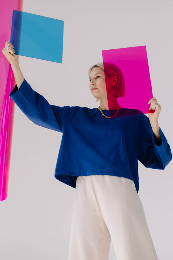Longsleeve ma przepiękny szafirowy kolor. Świetnie wygląda w zestawieniu z beżem (np. spodni FIKA /light beige cotton/. Jestem fanką tego połączenia.