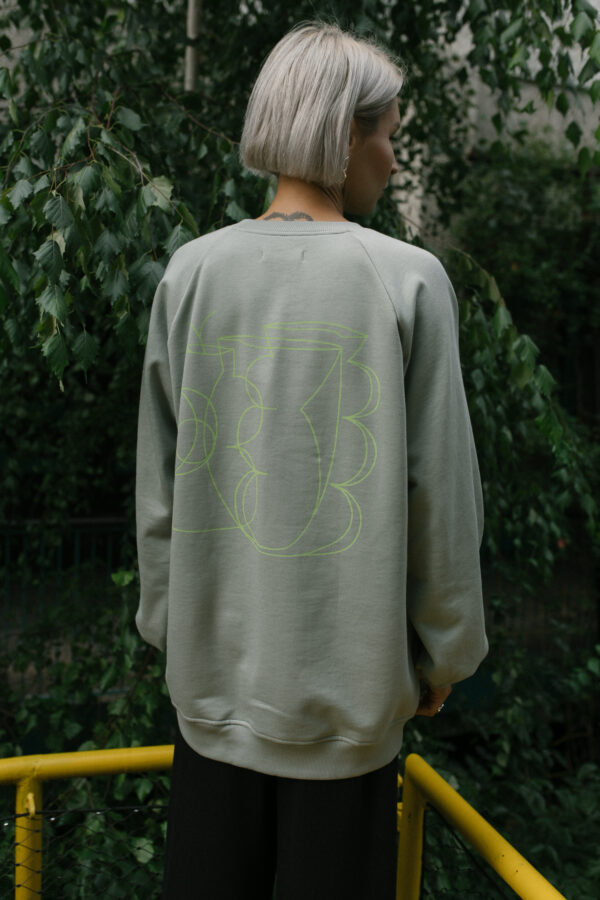 Bluza powstała we współpracy z wrocławską artystką Anią Szczerbą. Ania zaprojektowała wzór specjalnie dla Pulpy (możecie go też zobaczyć na tiszercie i chustkach VASES – i mieć wazoników komplet).